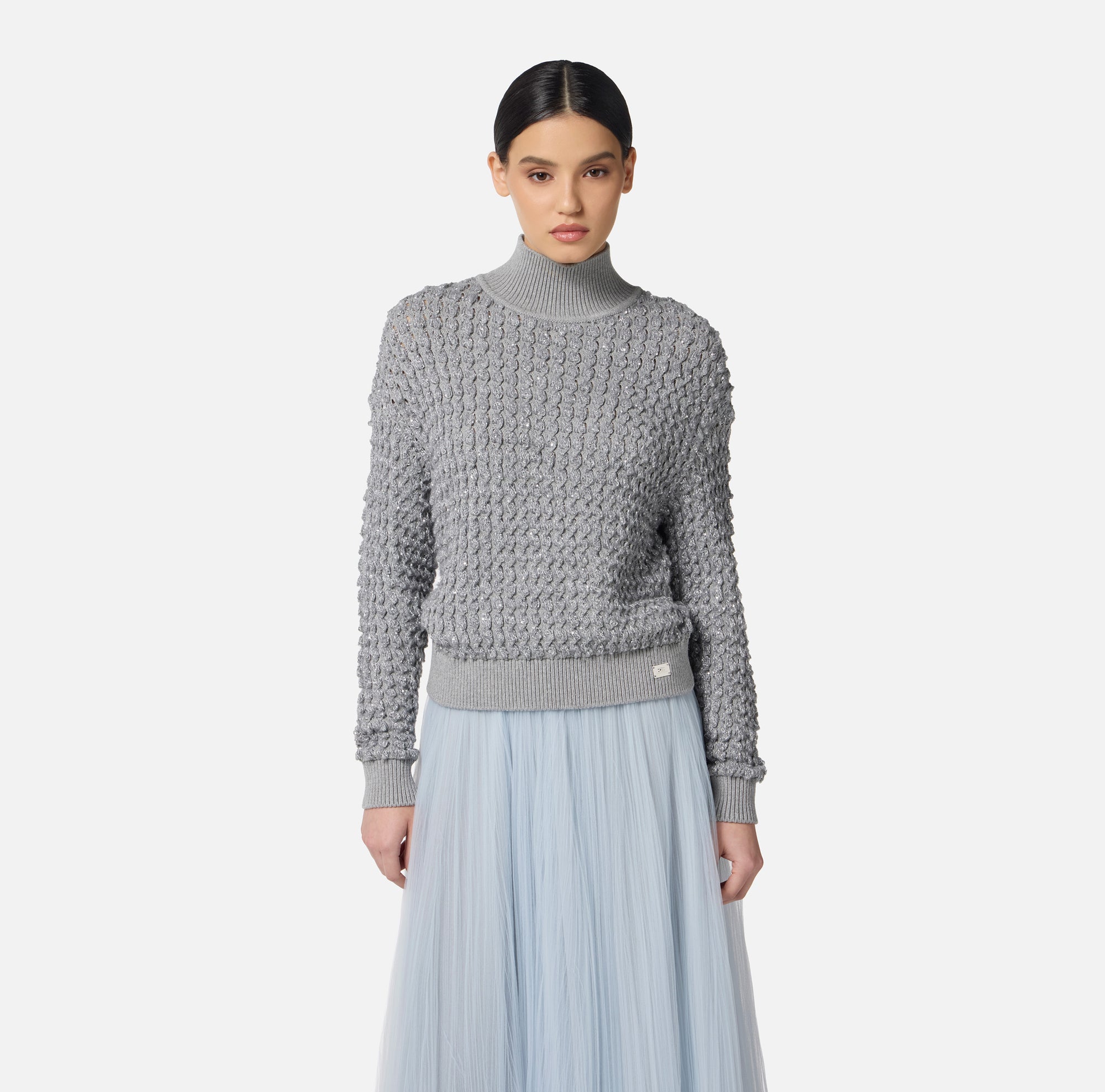 Elisabetta Franchi Maglia in Bouclé con Paillettes Grigio Melange