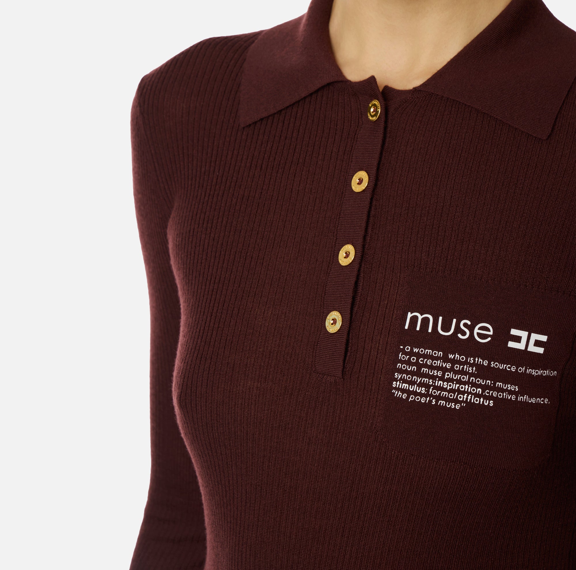 Elisabetta Franchi Polo in Maglia con Dettaglio Lettering Merlot